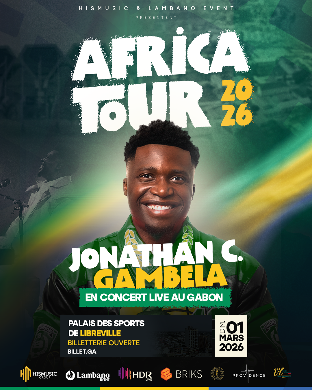 Pour la toute première fois, au Gabon 🇬🇦 Jonathan C. Gambela l’artiste dont les chants portent guérison, foi et puissance, foulera la scène du Palais des Sports pour une soirée qui s’annonce mémorable. 🔥